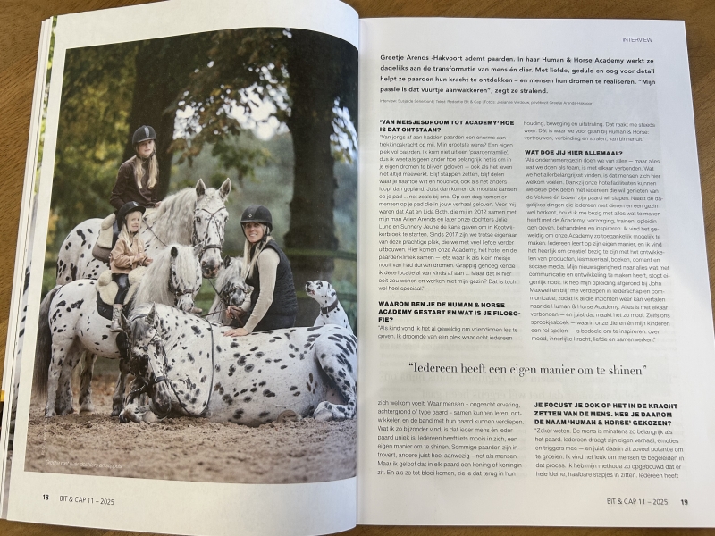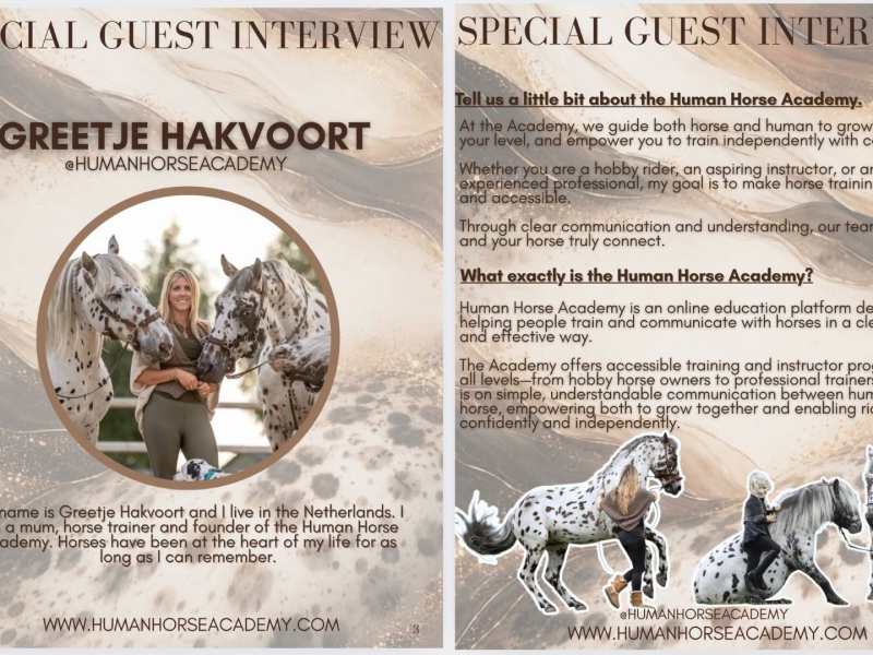 Welkom bij Human & Horse Academy. We waarderen uw interesse in ons bedrijf en zijn blij om te helpen met uw pers of mediaaanvragen. Als u vragen heeft, meer informatie of foto's van onze stippelvriendjes wilt ontvangen of een interview wilt aanvragen met Greetje, staan we klaar om u van dienst te zijn. Hieronder vind je een tevens een aantal voorbeelden van eerdere publicaties.