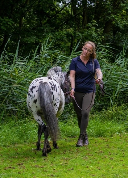 Ik ben iemand die het belangrijk vind dat we in rust en ontspanning trainen. Dat we goed kijken wat paard en ruiter aan kan. Dat het paard maar ook de ruiter juiste lichaamshouding-beweging gebruikt.